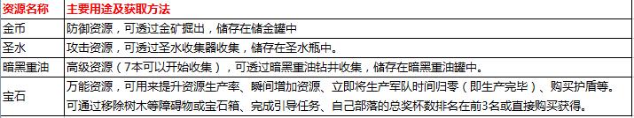 升级设施和训练兵种都需要消耗一定资源,资源分为四种: