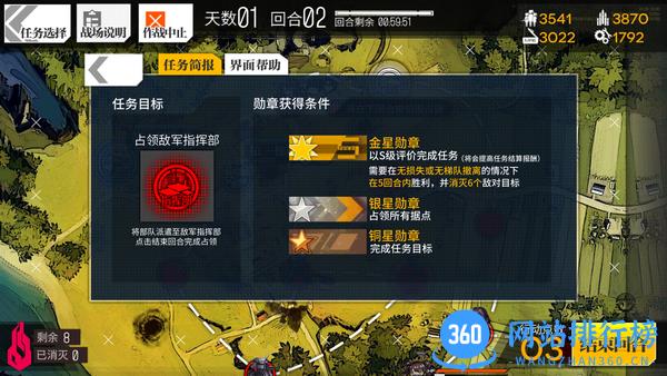 除了金勋章的要求,还有一个需要注意的指标:敌人的作战效能。每一关敌人的作战效能都不一样,如果派出作战效能过低的小队,则很难顺利通关。一旦中途有小队撤退,那金勋章就与你无缘了!