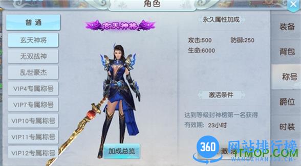 称号分为三种:永久获得的称号、存在时间限制的称号、可争夺的称号,三种称号属性可叠加