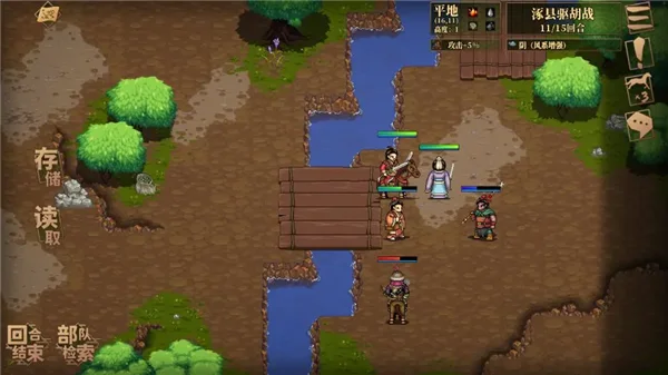 像素国风美术:武将立绘与战场单位统一像素风,打击特效与火光烟尘细腻克制,复古而不失张力。