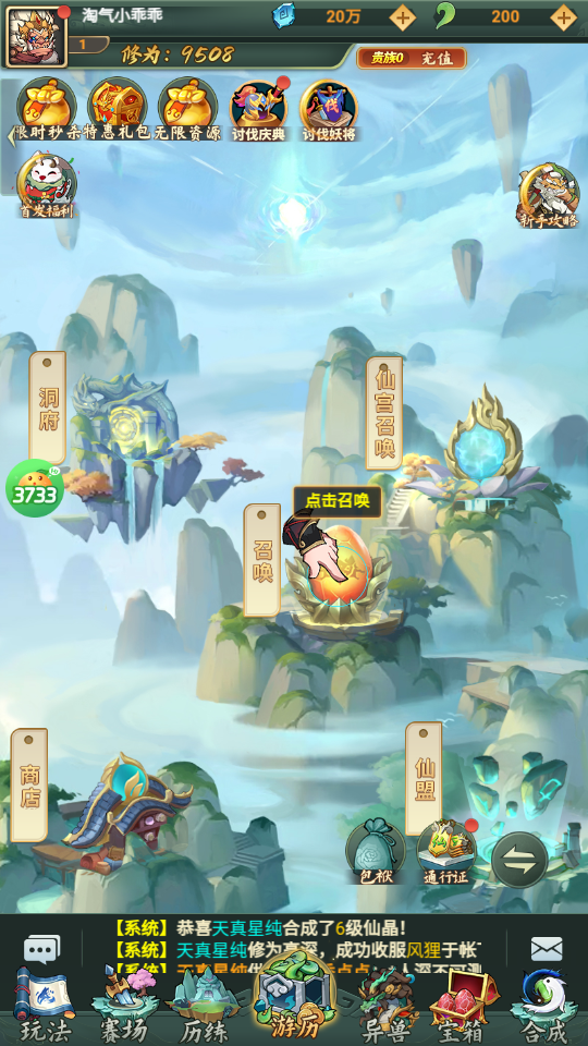妖游记Q版回合高爆手游是一款以山海异兽×国风奇谭为主题的放置养成策略手游。你将化身镇妖行者,携蛋孵灵,契约青龙、玄武、穷奇、帝江等传说级妖灵,穿梭于洞天福地与洪荒秘境之间,镇压妖潮,守护人间。游戏主打轻操作、深养成与高福利:天天送大礼、每日500充值、100连抽常驻,更有充值永久0.1折的超值商城,真正做到不肝不氪也能养成神宠,体验开荒与爆发的双重爽感。