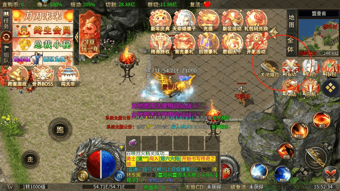 活动矩阵:全民红包、世界入侵、远古秘境、限时首领等活动穿插全天时段,随时上线都有事可做。