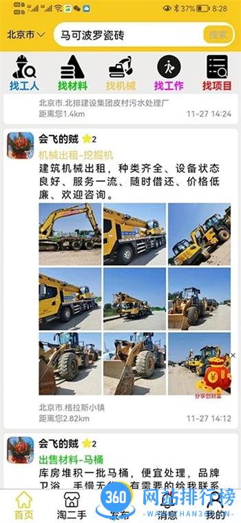 闲置的工程机械或工程用具,支持二手用具转让,可将闲置物品转让给其他需要的用户赚取租金,让闲置物品充分流通起来,创造更大的价值。