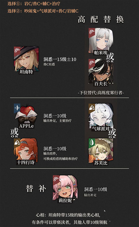 所以玩家就需要携带一个拥有很强奶量的辅助,小编建议玩家使用苹果或者十四行诗,这两个角色不仅奶量充足,并且可以为玩家其他角色增加输出。而输出角色小编推荐使用坦特南,这个角色不仅有很强的续航讨论能力,而且还是克制boss的兽属性。