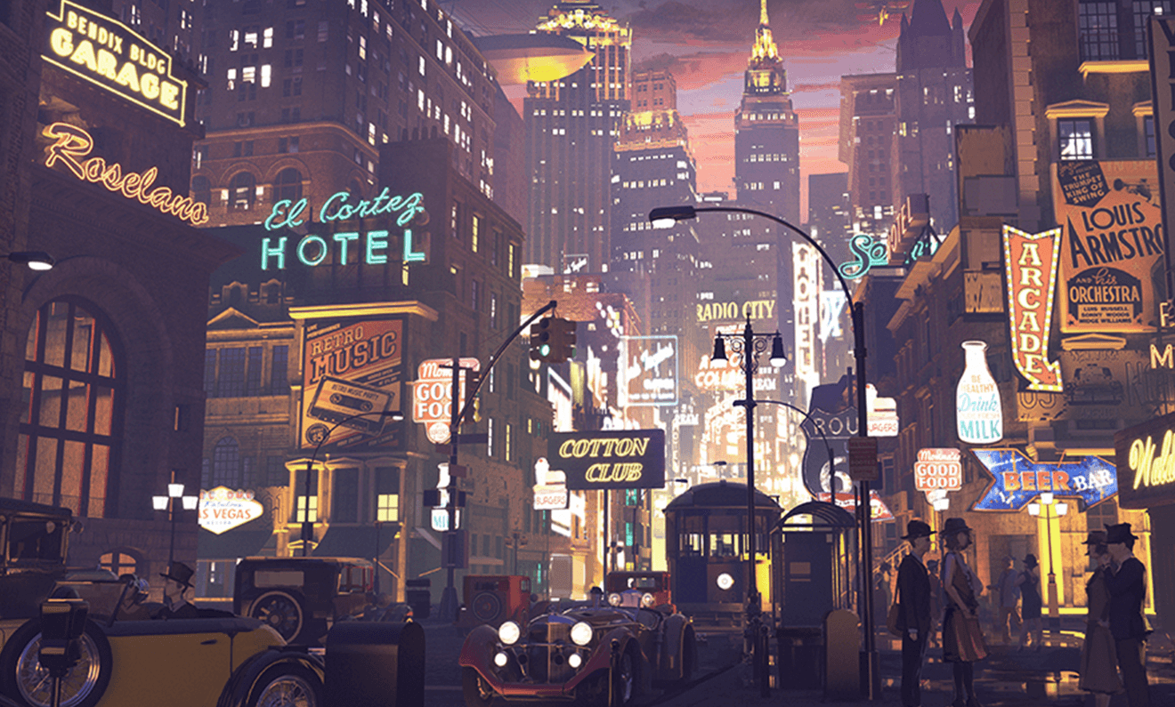 1920年代的纽约,现代科学也在化一切为可能。福特汽车、无线电的使用,将世界推向乐观浪潮的更远处。爵士乐响彻通宵,人们在查尔斯顿舞步中奔赴下一场宴会没有人能拒绝加入这场狂欢