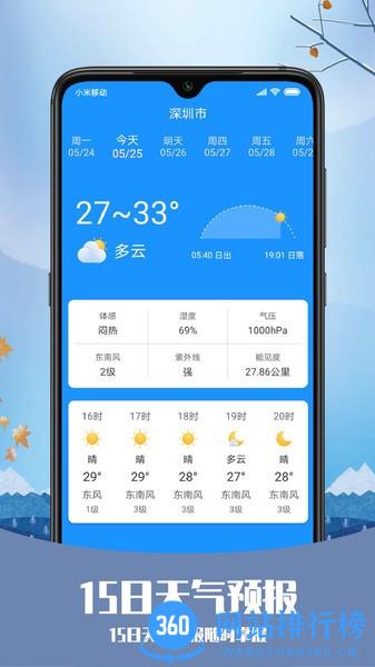 未来15天天气状况一目了然,提供穿衣、洗车、紫外线、感冒、运动、出行等生活指数