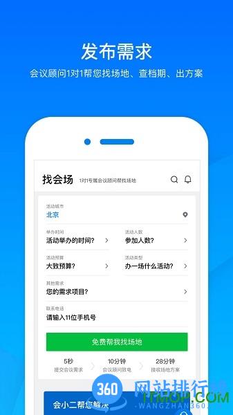 会小二app是一款专为用户提供会场预订服务的手机应用软件,在该应用中有全国数万个场地的选择。用户在这里可以任意进行在线的会场预订,价格优惠。有需要的用户欢迎来网站排行榜下载使用吧!