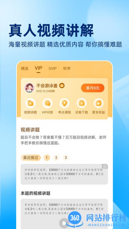 8.题库覆盖:数学、英语、语文、物理、化学、生物、历史、政治等,各科难题帮你解决~