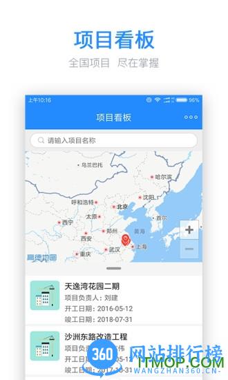 项目看板:地图实时查阅,项目位置、进度立体化呈现。