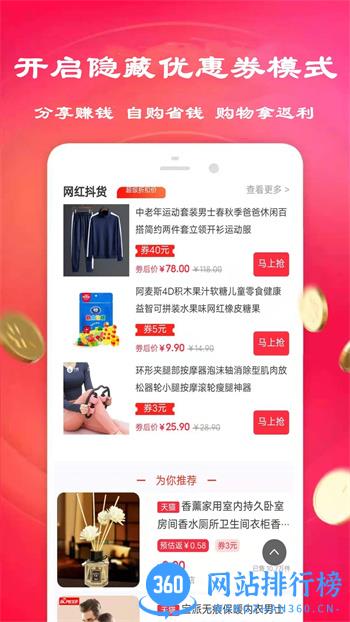 在这款软件中,用户能够购买到各种各样便宜的商品,有新人免单活动省钱教程赚钱教程等等,能够让用户在买东西的时候还能够赚取的额外的收益,在购买商品的时候直接通过类目查找,或者是在搜索框里面输入关键词查找非常便捷,能够给用户更好的购物体验。