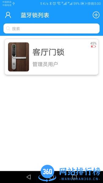 1、电池电量:手机直接可以看到门锁电池电量情况,在电池电量不足时(低于4.8V),门锁语音提示,开门时APP另外语音提示。