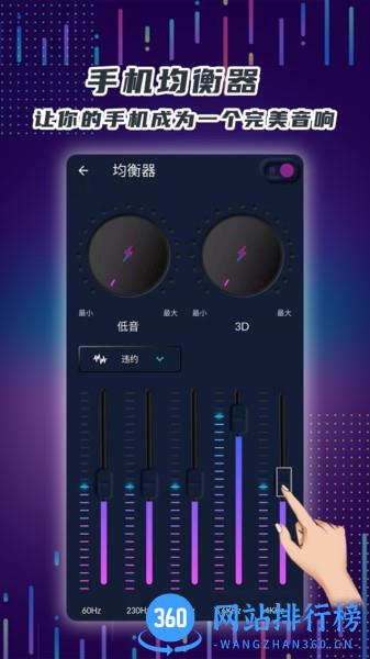 2.强大的音乐均衡器,具有20多种专业预设声音效果,五频段音乐均衡器,均衡器音量放大器