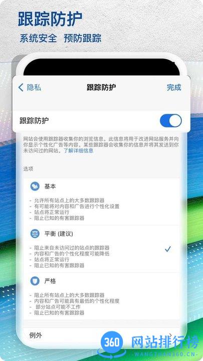 在网上保护自己。这个浏览器会通过默认设置来启动防追踪功能,所以您什么都不用做,就可以用更隐私的方式来浏览网站。