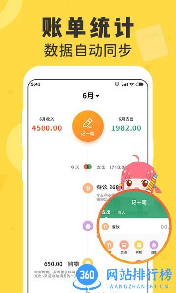 -- 账单明了:根据支出做出统计,自定义周统计、月统计、年统计,形成分析图,资金管理、账单流水、余额资产,消费趋势一目了然,助你轻松理财!