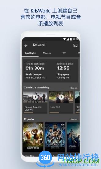 连接KrisWorld机上娱乐系统,直接从您的手机/平板电脑上播放最爱的影片,查看飞行路线和飞行轨迹。