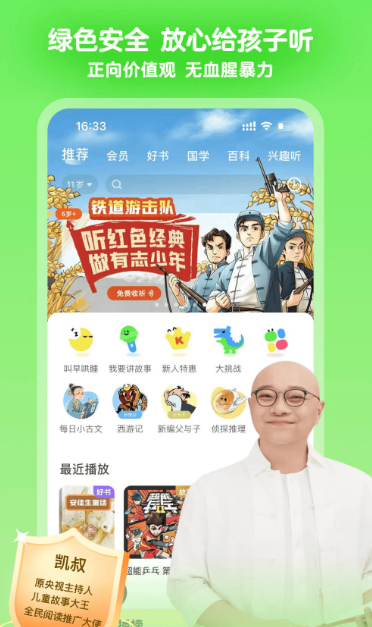 凯叔讲故事是中国儿童内容领域优质品牌,于2014年4月21日正式创办,创始人王凯。专注打造中文领域的优质原创儿童内容,为0-12岁的儿童提供音频、图书及衍生产品,致力成为陪伴一代代中国人的童年品牌,打造&ldqUo;孩子喜欢,家长信赖”的儿童优质内容专业服务。
